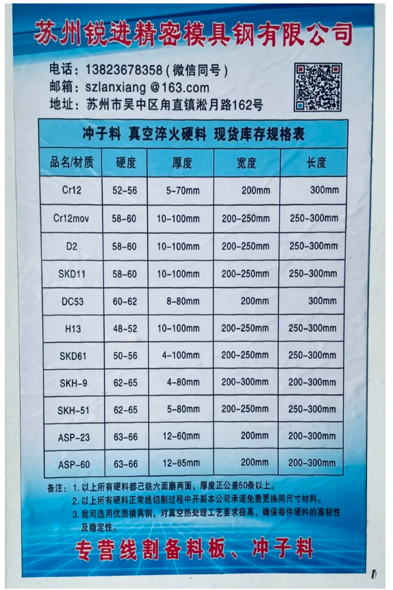 6月11日,我会麻城工作委员会会长程光华、秘书长林胜国等带队,走访苏州锐进精密模具钢有限公司位于甪直的店面和位于昆山的工厂,公司总经理郝红波接待了走访人员。公司主要生产和销售金属材料销售;高品质特种钢铁材料销售;建筑材料销售;模具制造;模具销售;五金产品制造;五金产品批发;五金产品零售等。
